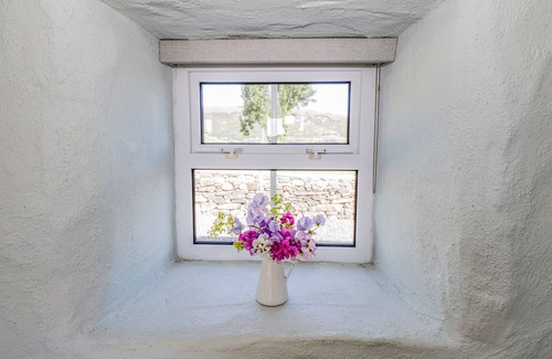 Amenities: Electric central heating and woodburning stove. Electric oven and hob, microwave, fridge/freezer, dishwasher, washing machine, tumble drier in the outhouse. TV and WiFi. Fuel, power and starter pack for woodburning stove inc. in rent. Bed linen and towels inc. in rent. Off-road parking. Gravelled garden with furniture. Sorry, no pets and no smoking. Shop within 3.4 miles, pub within 4 miles. Note: The ground-floor double bed is suitable to sleep one guest only. Note: There is a narrow staircase leading to the first floor and limited head space beneath the eaves, please take care. A travel cot and highchair are available