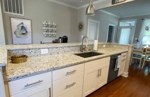 Welcome to the River Point Cottage! The Cottage welcomes you and yours with three bedrooms and two full bathrooms all on one floor. The first two rooms, with queen beds and bright light, are nestled off the living room with a shared full bath (and tub). The primary bedroom is positioned off the back of the house off the dining space. The primary is a spacious room with a king bed and en suite walk-in shower. For those of you traveling with babies, we have several items to help with packing your car: Booster Chair for dining room table, Pack'n'Play (2nd bedroom closet) as well as an assortment of kid plates & cutlery.