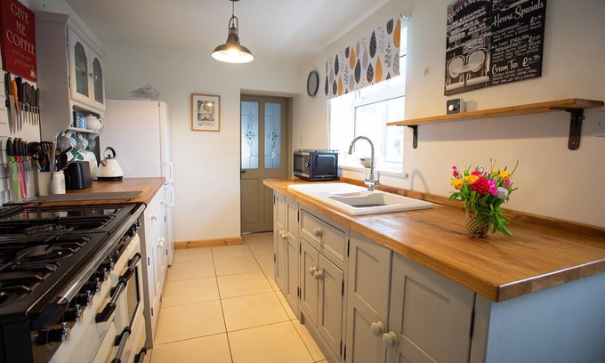 Tilly Cottage offers a great value get away for up to 4 people. It has a well equipped 'cottage style' kitchen with large range cooker, dishwasher, fridge freezer and microwave. A utility room with washing machine and a place to store bikes. The living/dining room is open plan, with comfortable seating and a dining table for 4. There is wifi and Freesat TV channels available. Gas central heating and hot-water on demand.