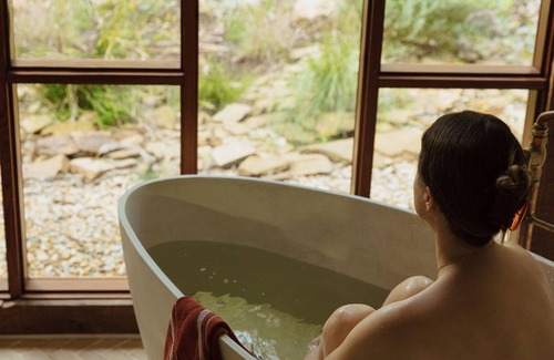TIMBA offers four king-sized bedrooms, all with central heating and cooling, ceiling fans, and blackout blinds. The main house has three bedrooms, including the oversized master with an ensuite and bathtub looking out to the bush. The other two guest rooms share a bathroom. Located only 10 metres from the main house, across the native courtyard garden, is our studio room, which has its own ensuite.