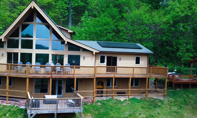 Stunning top destination timberframe chalet with incredible views under an hour from DC. Gated 8 acre property 10 minutes from Shenandoah National Park & River, 1 mile from Appalachian Trail.