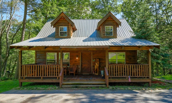 - Log Cabin 2 acre borders Lehigh River & Trail- Gameroom, 2 Bars, Fire Pit, decks