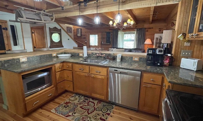 Fully equipped kitchen. The outdoor living will be set by spring. Corn hole, Horse shoes, Redneck Golf, Fire Pit, BBQ