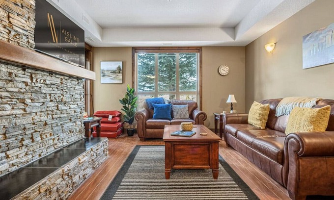 The living room features a 46` smart TV that is Internet-enabled. You can log into Netflix or any other streaming service you wish to use. Cozy up to the fireplace and watch a movie while the big horn sheep slowly roam by the windows.