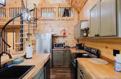 This cabin also provides you with a 'starter pack" of essentials: TidePods, dryer sheets, paper towels, toilet paper, coffee bar, clean linens, salt & pepper and mini shower essentials.