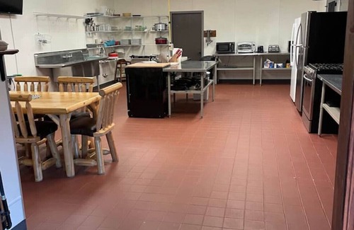 Inside, enjoy a massive industrial kitchen designed for group meals, a cozy great room, and three roomy bedrooms to accommodate your whole crew. There are also ample bathrooms to ensure everyone's comfort. The entire building is yours, so you can enjoy complete privacy and relaxation during your stay.