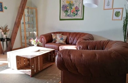 Our guest apartment is located on the upper floor of the former farm building. Lovingly furnished, it offers a spacious living room with comfortable seating area, satellite TV, kitchenette and separate dining area. In the large bedroom, a comfortable box spring bed (1.80 x 2 m) guarantees a good night's sleep, there is also a sofa bed that extends out to a lying area of 140 x 180 cm. Another sleeping option is in the form of a sofa bed (1.40 x 2m) in the living room. A nice daylight bath with a large shower completes the whole thing. We offer the apartment for up to 4 people.