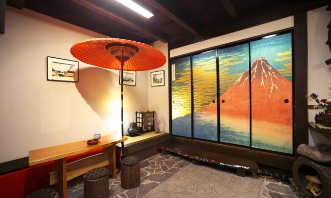 Hida Takayama Ukiyoe INN Painting Theory is an inn limited to one group per day which is a 90yearold folk house converted into an ukiyoe gallery / Hida Takayama Ukiyoe Inn Gaton is a 90yearold traditional house that has been renovated into an Ukiyoe gallery