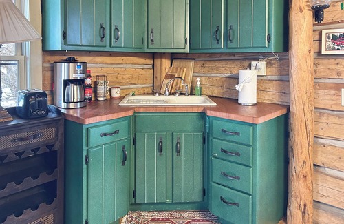 The cabin boasts a spacious master bedroom with a king-sized bed, a cozy sofa sleeper with a queen-sized bed, and a loft bedroom above the kitchen with a queen-sized bed. Kitchen is fully equipped with everything that you will need. With both indoor and outdoor dining spaces, as well as a full bathroom featuring a charming clawfoot tub, this home is perfect for unwinding after a day of outdoor adventures. This retreat is ideal for one or two couples, or a small family.
