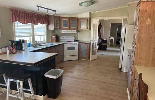 The Ranch House provides 3 fun farm themed bedrooms - one with a king bed, and two additional bedrooms with a full sized and twin bed in each (plus one additional trundle bed). With 2 bathrooms and a lovely living room with a sofa bed and play area, this place is perfect for families or groups of friends. Enjoy the convenience of WiFi, a washing machine, mobility ramp at side entrance for stair free access, and a back yard that looks out onto miles and miles of cotton fields. Relax in this awesome and serene space after a day of exploring Lake Blackshear. We're happy to assist with any questions while you stay at the Ranch.