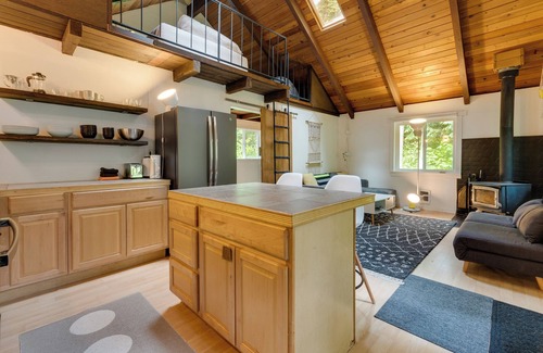Loft: The loft is an open space overlooking the living room and kitchen. It offers a queen bed, beautiful views of the trees, and great ceiling heights (tall people will definitely fit). Please be aware that access to the loft requires climbing a ladder, and has a wide opening at the top. If you are NOT OK with climbing the ladder (as clearly shown in the photos), please DO NOT book this cabin, and then complain about it in your review. We are completely up front about this, and it is quite frustrating when people don't pay attention to this, and then complain about it in their review. Children under the age of 12 ARE NOT allowed in the loft at any time.