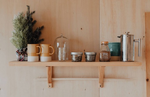This tiny cabin sits on the bottom of the hill overlooking mountains and the valley. The space brings you comfort, warmth and amazing views! There are two queen size bunk beds and a “couch” which also serve as daybed and it can accommodate extra person (please ask for linens). There is “outhouse” with compost toilet right next to the cabin and outdoor shower.