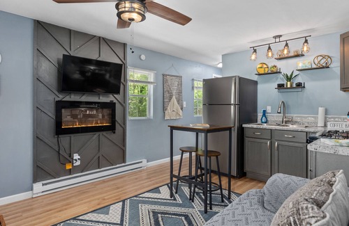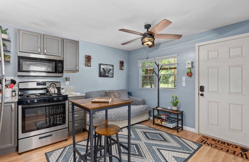 Private, secluded lot with the cutest, coziest tiny home and everything you’ll need to relax! One bedroom with Queen memory foam bed and smart TV; one full bathroom with tub/shower combo, shampoo, conditioner, body wash, and full sized washer/dryer; Full kitchen with stainless steel refrigerator, microwave, stove/oven, Keurig, pots/pans, dishes, etc; Living room with sofa, fireplace, and smart TV; Outside, you’ll find a gorgeous porch swing, a fire pit, chairs, and a charcoal grill. Air mattress available for extra guest.
