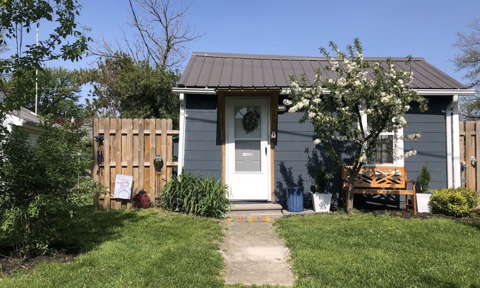 Tiny cottage on the Belle river. 1 bedroom with bathroom and loveseat in living room pulls to a twin bed. Full kitchen. 400 square feet of tiny! Cute and cozy. Walk 7 blocks to town and the BIG St Clair river. Watch freighters go by. Public beach too. Cute shops and great seafood restaurants! There is a tv and dvd player and movies. Antenna only; tv is positional and may only get a few channels. No internet. Cell service is fine.$35 per pet per stay no cats. Keep off furnitureand beds and crate as needed.