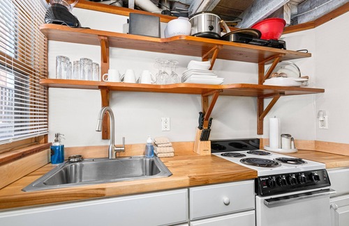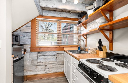This delightful 1-bedroom tiny home packs big charm into a cozy space. The bedroom features a comfy queen bed, and the living area includes a full sleeper sofa, sleeping up to 4 guests. The compact kitchen has everything you need to whip up a meal—think stovetop, microwave, and essentials—perfect for a quick breakfast before hitting the beach. Step outside to the backyard, a great spot for morning coffee or evening wine. With beach access so close, you'll feel the lake's magic right at your fingertips. This unique cottage is the ultimate Duluth getaway—simple, snug, and surrounded by nature. Book your Lake Superior escape today!