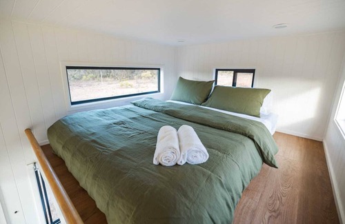 Tiny Eli has everything you need and nothing you don't. It's the epitome of minalism, made for two with a comfy Queen bed in the loft, a snug Koala sofa and a bookshelf of great novels for you to get lost in.
