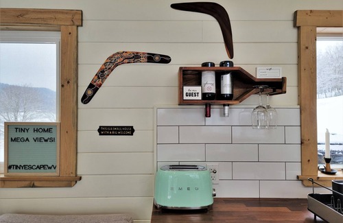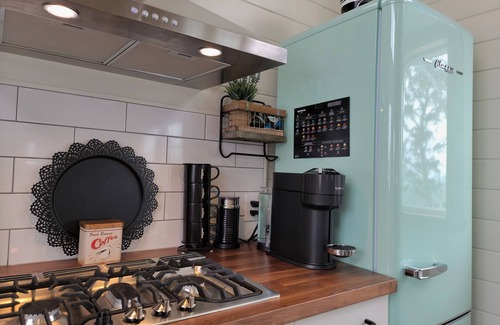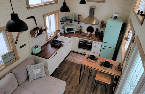 Escape to the country and experience an unforgettable stay in a genuine, new tiny home. While we call it "tiny", it is really quite spacious. French doors and skylight bring plenty of daylight in and make it feel like you are living in the middle of the wilderness with comfort and luxury...