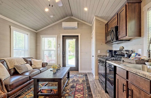 Live large while living tiny in this very cozy tiny cottage. Plenty of living space with a living area, dining area, full kitchen, full bathroom, and bedroom (queen bed) downstairs and a large sleeping loft (stair access) with 3 twin beds.