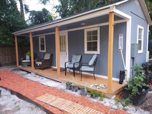 Tiny home barn style in backyard with Animals is located in Orlando.