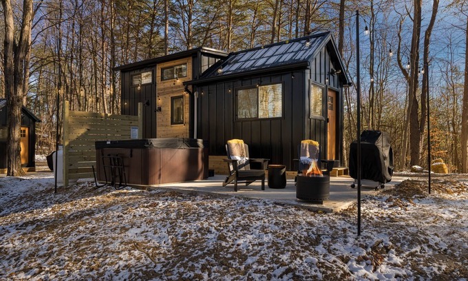 Tiny Home fire pit + hot tub + community game room | House in Laurelville