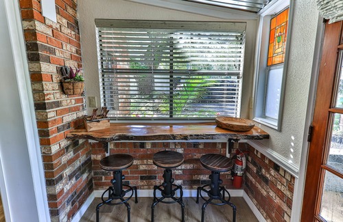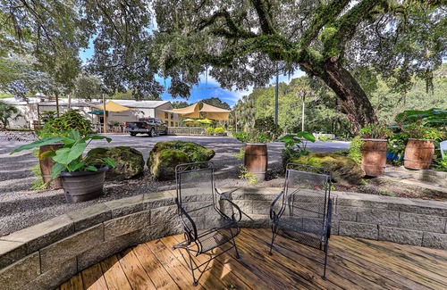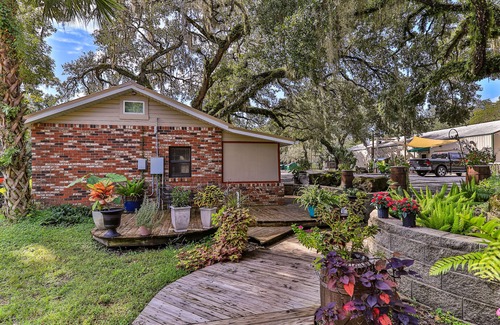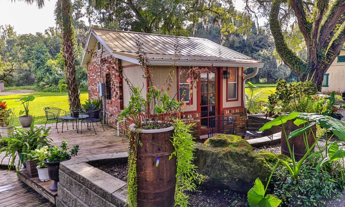Take a step back into Cove History with this divine original fish camp cabin! This stylish and cozy gem is perfectly suited for couples! Enjoy authentic wood ceilings, vintage décor, granite counter tops, live oak shelving, breakfast bar and walk in shower. Nestled under huge live oak and surrounded by decking. This cabin offers a romantic retreat and escape from daily life!