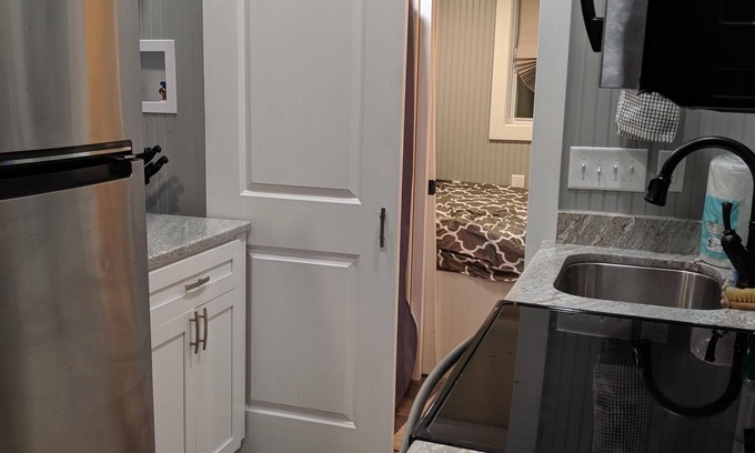 Have you ever wanted to experience staying in a tiny home well this tiny home has it all. Granite counter tops, full size stove, oven, and refrigerator. In the bathroom there is a stand up shower. Downstairs has a bedroom with a queen bed. Upstairs is a loft with another full size bed. There is a storage loft and a sitting area with a bay window that overlooks the lake. Plus two tvs. It is location in safe haven park in Macon Georgia. The park is gated that uses and entry code to enter and exit. The keys for check in are located in a lockbox on the door. WiFi, heating, air-conditioning, water, trash and utilities are included. There are coin operated washer and dryer located in the park as well. Please let me know if you have any further questions.