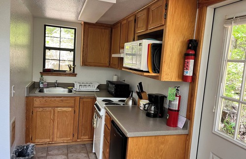 Tiny House Charm: Step into a cozy space reminiscent of a quaint tiny house, complete with a compact but well-equipped kitchen and bathroom. Dishes are provided for your convenience.
