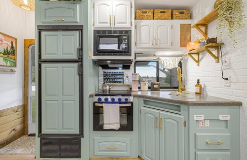Escape to a one-of-a-kind renovated camper, with supplies curated from all over the world! This unique time home will be a stay you will always remember. Enjoy cozy nights by the indoor or outdoor fireplace, grill under the stars, and relax with full hookups—no roughing it here. Just outside the quaint town of Tetonia, an hour from Jackson Hole, Teton National Park, Island Park, and an hour and twenty from West Yellowstone, it’s the perfect base for your Idaho/Wyoming adventures or weekend getaway!