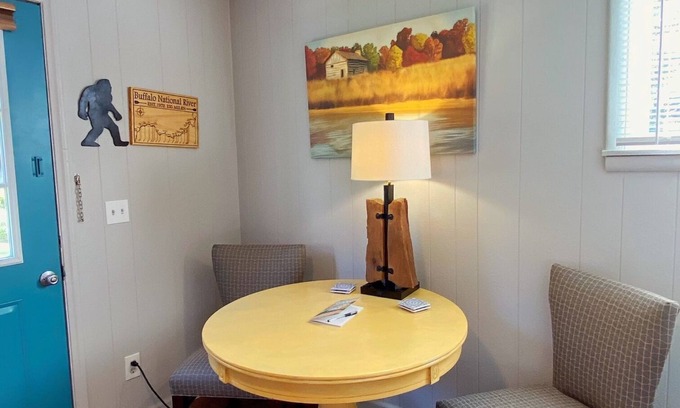 This newly renovated home features everything you would need for an overnight or extended stay. Our Tiny Home is furnished with a full sized bed, refrigerator, stove, cooking utensils, a microwave, toaster, coffee pot and a 32 inch television making it a perfect place for one person or for a couple just looking to get away. Close enough to downtown attractions, but secluded enough to feel like you’re cozy at home. Tiny Home of Harrison is located just off Main Street, and a short walk to Lake Harrison Park and the Square. We are a short drive to the Buffalo River and a 45 minute drive to Branson, Missouri.