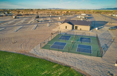 You'll love our BRAND NEW luxury RV Resort in Ehrenberg, Arizona. Just steps away from the Colorado River, this 2 bedroom tiny home is the perfect retreat for your next getaway! With luxurious amenities including an entertainment-filled Clubhouse, heated swimming pool and hot tub, pickleball courts and a dog park, you'll never run out of things to do at River Sands RV Resort.