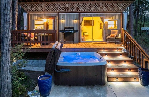 Tiny home with spa/firepit/and more! is located in Oakhurst. Tiny home with spa/firepit/and more! provides accommodation, featuring Bedding/Linens, Wellness Facilities, Child Friendly, among other amenities. This House features Bedding/Linens, Wellness Facilities, Child Friendly, to make your stay a comfortable one.