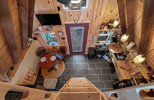 Escape to our charming tiny house nestled in the heart of nature! Perfect for any peaceful retreat, this beautifully designed space offers all the essentials for a comfortable stay, including a cozy bed, fully equipped kitchenette, and modern bathroom. Relax on the outdoor deck and enjoy the serene surroundings. Whether you're seeking a romantic getaway or a solo adventure, our tiny house provides the perfect blend of simplicity and comfort. Close to hiking trails, local attractions, and more!