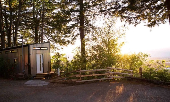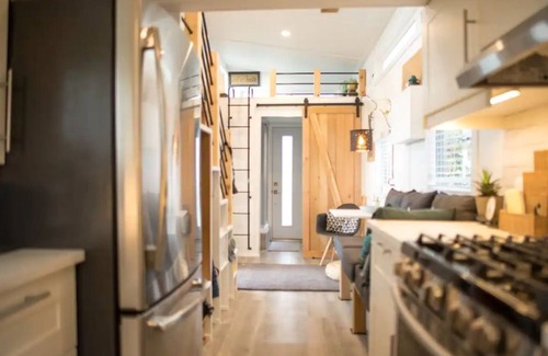 This tiny house is fully equipped with full kitchen and bathroom and lots of space to relax inside and out.