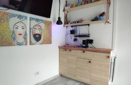 While you're here, you can enjoy all the comforts of home and more, including WiFi and a bidet, as well as air conditioning and an ironing board. Other amenities include towels, soap, toilet paper, and a hair dryer.