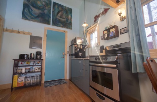 River House has beautiful views of the Winooski Falls and is part of Burlington's historic mill neighborhood. It's a 10 minute walk to the Winooski Circle which is full of restaurants and activity. Downtown Burlington and Lake Champlain are a 10 min drive away. This unique, arty, brand new loft space includes hardwood floors, a small kitchen and bath, and a shared outdoor space. River House is a good fit for couples, solo adventurers, and business travelers.