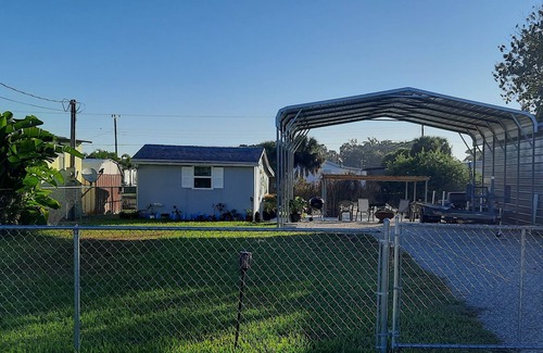 NO REGRETS with an affordable awaycation at "Crappie Cottage"! Crappie is another name for Speckled Perch. Situated on a tranquil canal minutes to Lake Okeechobee & the Kissimee River, you'll experience more than you could imagine. Catch Bass right off the dock! Our cottage is perefectly supplied with EVERYTHING you could possibly think of including grills, a firepit and safe, fenced in covered parking. Our reviews prove why we are Superhosts! Perfect for couples wanting a romantic getaway...