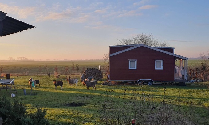 Our Tiny House with a total of 17sqm is very idyllic on our property with a view of the fields and a small vegetable garden.
