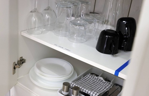 For your convenience, there's a refrigerator and an electric kettle. Bathroom amenities include towels, toilet paper, and soap. And there's access to laundry facilities, so you can even pack a bit lighter. Other amenities include a BBQ grill and bed sheets.