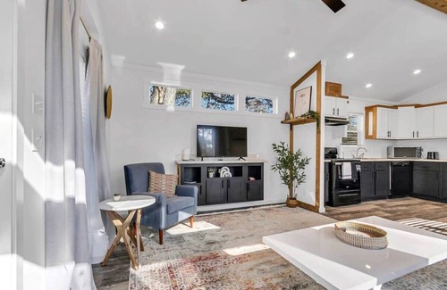Guests will enter through the front door into the open-concept space. The welcoming living room has a SmartTV for entertainment and a comfortable futon. You'll find a well-appointed kitchen ready for you to prepare meals throughout your stay.