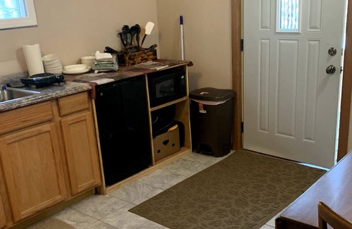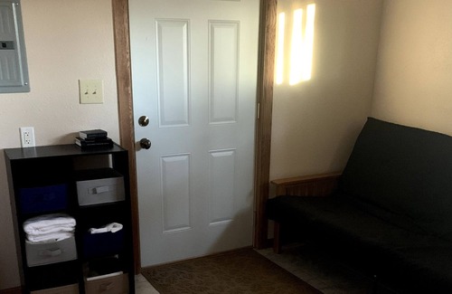 This little house is located just 15 miles from the Maah Daah Hey trailhead and the North Unit of Theodore Roosevelt National Park. Trail access points are just minutes away. It's the perfect location to base camp and set out on a new adventure every day. Whether you are here to tour, hunt or fish, this is a great central location for all of it! You’ll want to make sure you have some basic groceries before you arrive as the closest store is 30 min away, and Walmart is an hour away! The tourist town of Medora is only 55 minutes away. It is very much a tiny house, but the view is nice off the front porch. If all you need is a good night rest and a short shower (like 5 min. is as long as the hot water lasts)this is just what you are looking for! A half bath with shower and a fully stocked kitchen takes up one half of the home with a hot plate, microwave and fridge included. The other half is where the beds are located. Guests are welcome to relax around the firepit when fire danger is low. It is an easy location to disconnect from the world as there is no wifi or television. Washer and dryer of owner may be accessed if needed.