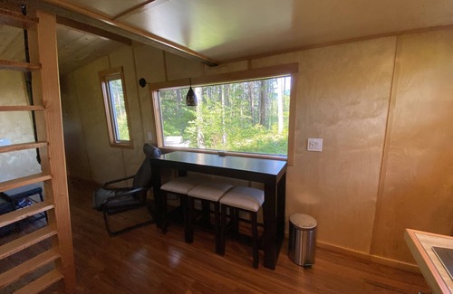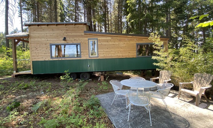 Custom 360sf tiny house on 6 quiet acres. Our home has lots of light and everything you’ll need for a great visit. Located in Husum, WA. which is conveniently located about 10 minutes to White Salmon and Hood River areas. Amazing white water rafting minutes away, breweries and wineries as well!.