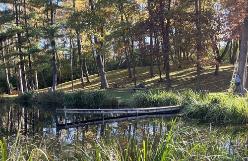 Tiny house sits on 10 acres in the back of a horse farm. Maybe the most peaceful place on earth. As you relax in front of a small pond you are surrounded by woods with marked walking paths. Your only neighbors are coyotes, possums, foxes, deer, turkeys, owls, eagles, and sandhill cranes. Tiny house means “tiny”. 175 square feet to be exact. Tiny house has a shower,toilet, small fridge, microwave, coffee maker and toaster. House has no cooktop but there is a Weber grill outside. Home also has a full size pull out futon.Tiny house is 10 minutes to historic downtown Woodstock . Woodstock is so unique they filmed Groundhog Day and parts of Planes, Trains, and Automobiles there. You are also just 25 minutes to historic Richmond and Lake Geneva. As owners of the property we invite all guest to venture up to main house and barn to say hi to the horses and chickens. Mary and I enjoy sharing our beautiful farm.