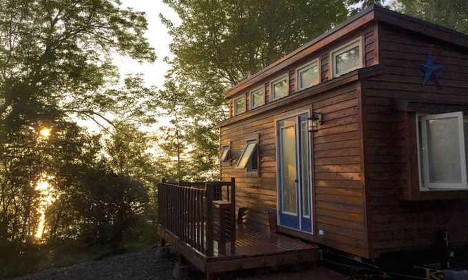 Tiny houses aren’t just for hipsters and millennials anymore. As Americans and Canadians have taken an interest in tidying up, downsizing their belongings and living more efficiently, the tiny house movement has gone mainstream, and it’s inspiring people of all ages to embrace small spaces. Our new tiny house is placed on one of the most magical places we have found in many years traveling around the world in our boat. It sits just a stone throw away from Nova Scotia biggest fresh water Lake Ainslie, facing northeast an incredible sunrise lake view. Its unspoiled quiet will help you to experience life with open eyes and a new energy. It is back to basics. It is heaven on earth. Listen to the Loons and many many Bald Eagles watching for trout. Swim in the crystal clear water to the nearby perfect sandy beach where mussels draw their work of art in the sandy soil.