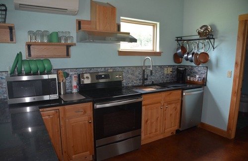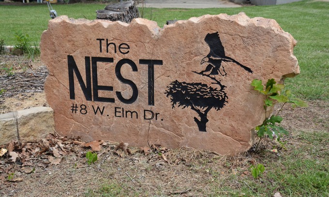 Wonder what the Tiny House life is about? Come stay at the Nest - a unique cabin designed to make you feel like you are part of nature. Shaped like a bird tending her nest, the 3-bedroom gem offers tranquility and relaxation for a weekend or longer. This cabin offers a cozy retreat with a dedicated queen sized bedroom downstairs. Upstairs in the loft there are 2 twin beds and 1 full bed separated by a pony wall for semi-private sleeping. Enjoy the tranquil living room with a comfy sofa bed for extra guests. Work a puzzle, play a game or snuggle up and read a book in the book nook. Our place is equipped for both long or short stays to make your holiday one to remember. You can relax on the back porch, grill up a steak and enjoy the sunset!