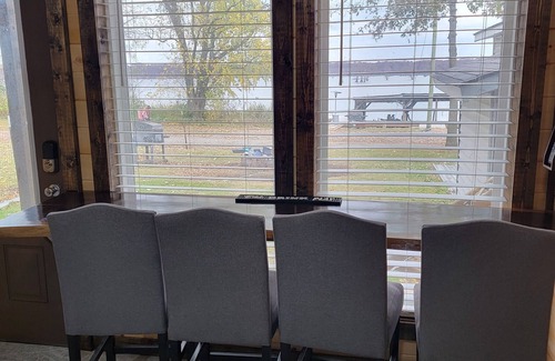 You will be able to have a Lake view. Watch bald eagles fly around fish right off the boat dock. And duck hunting in the winter. Relax and brand new beds Watch a seventy five inch t v Free wifi Free TV programming.