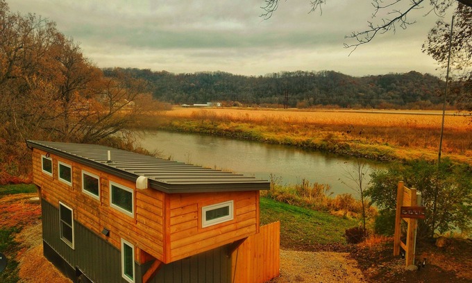 This cute and modern 340 sqft tiny house is an unique Airbnb experience . With all custom work inside and out it’s a must see ! Located on the beautiful Upper Iowa river in dorchester Iowa . For a romantic couples getaway , fishing trip or small family retreat, it will make your trip a special one .