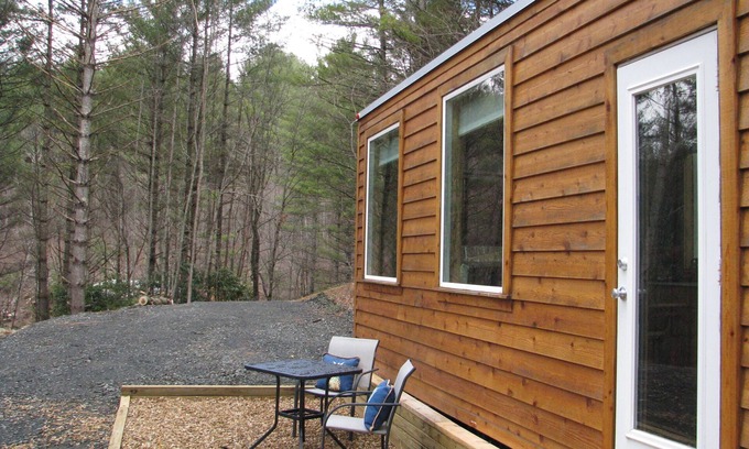 If you are looking for a quiet place in the mountains look no further. This tiny house on wheels is perfect for a couples getaway or quiet time by yourself. There is no river view from this property. 10 minutes from Downtown West Jefferson and Blue Ridge Parkway entrance, 1/4 mile to Elk Shoal River Beach, 30 minutes to Boone and 15 minutes to kayaking, canoeing and hiking. No wifi or tv in this building, we do have wifi on property. 1 queen size bed, kitchenette and bathroom. This property is pet friendly. Pet fee $50.00 to be paid on arrival, you must let us know you are bringing a pet at the time of booking. Driveway is gravel and steep in a few locations.