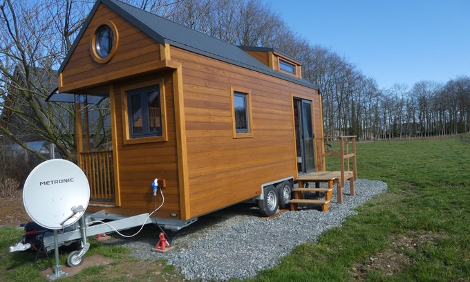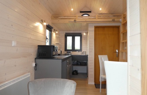 This Tiny House will seduce you with its originality '' 'equipped kitchen, shower, sink, wc, dining area, small living room, TV, beds in mezzanine 2 beds: Designed for 3 people without problem; all the comfort, beautiful view of the countryside outside terrace and table, 25 minutes from the beaches. Etretat, Fécamp, Honfleur,