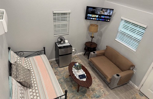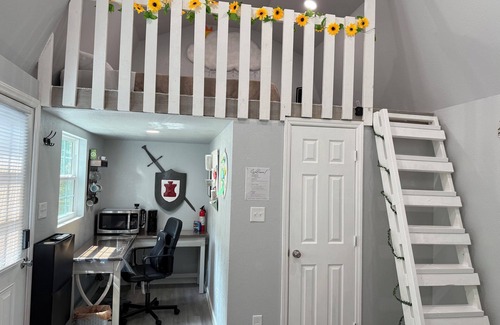 Make yourself at home in this lovely, tiny house retreat in Gastonia. The cozy space features a king bed, a twin bed, and a child bed, perfect for small families or couples looking for a serene getaway. With amenities like AC, WiFi, and a hair dryer, guests can relax and unwind in this welcoming space. The bathroom includes a bidet and a shower for added convenience. Fall in love with Gastonia and enjoy the magic it has to offer.