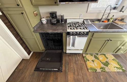 Complete with Kitchen, bathroom, central heat, on-demand water heater, washer & dryer, gas stove, refrigerator/freezer, dishwasher, microwave, Smart TV, WIFI, Murphy bed (no lofts), murphy table, complete kitchen utensils, outside fire pit/